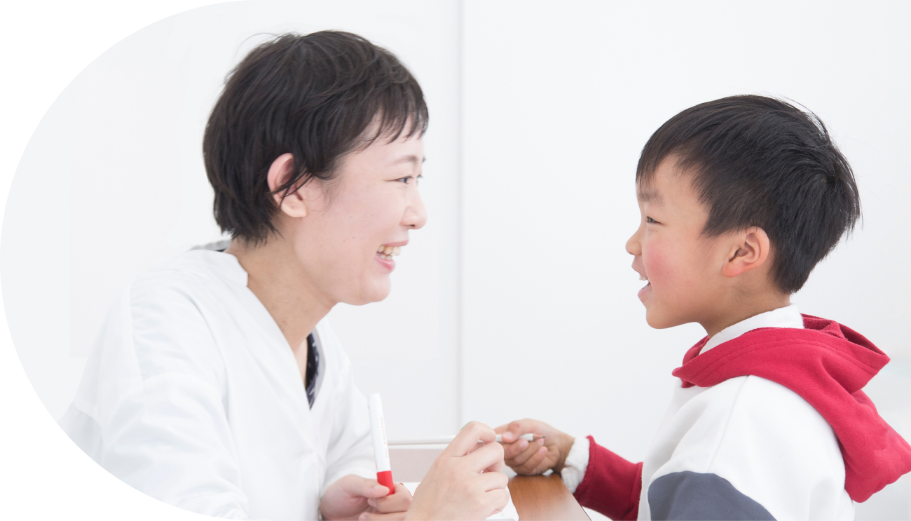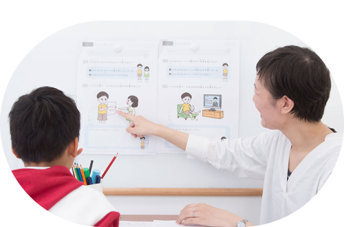 授業では「行動に先立つきっかけ」と「行動の直後に起きる結果」に着目し、お子さま一人ひとりの興味関心・好きを活かした指導を行ないます。マンツーマンでくりかえし練習することで「できる」回数を増やします。