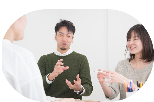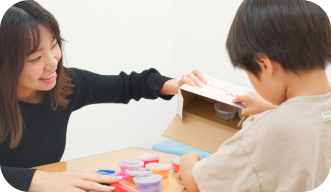 お子さまへの「関わり方のコツ」を見つけ、子育てのストレスを軽減しながら、お子さまの成長を促すプログラムです。保護者さまのやりやすさを第一に、ご家庭でできそうなことや、お悩みについて専門指導員が一緒に考えます。