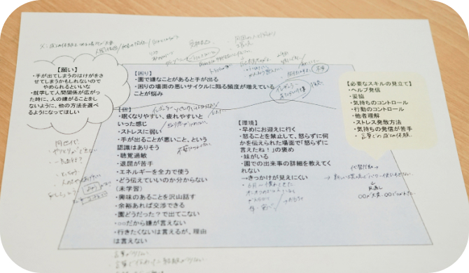 のご報告および、ご家庭やLITALICOでの手立てについて、保護者の方と一緒に検討させていただきます。